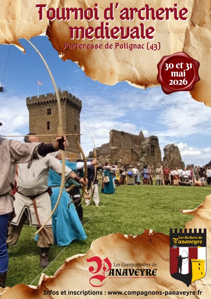 Chaque dernier week-end de mai, les Compagnons de Panaveyre en partenariat avec l’association Forteresse Polignac Patrimoine proposent leur fameux tournoi national d’archerie médiévale. Ce tournoi est organisé dans l’enceinte de la Forteresse de Polignac en Haute-Loire (43), dans la pure tradition des jeux d’arc, afin de promouvoir l’art de l’archerie médiévale.